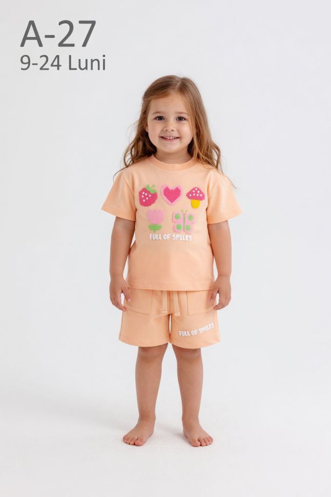 Acest set pentru fetițe din două piese este alegerea ideală pentru sezonul cald, oferind un echilibru perfect între confort și design atractiv. Setul este compus din tricou și pantaloni scurți, fiind potrivit pentru utilizarea zilnică.