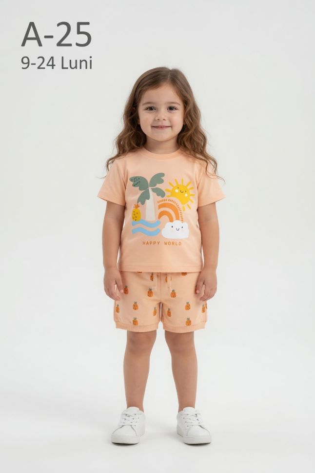 Acest set pentru fetițe din două piese este alegerea perfectă pentru sezonul cald, oferind confort și un design vesel. Setul este compus din tricou și pantaloni scurți, fiind potrivit pentru utilizarea zilnică.