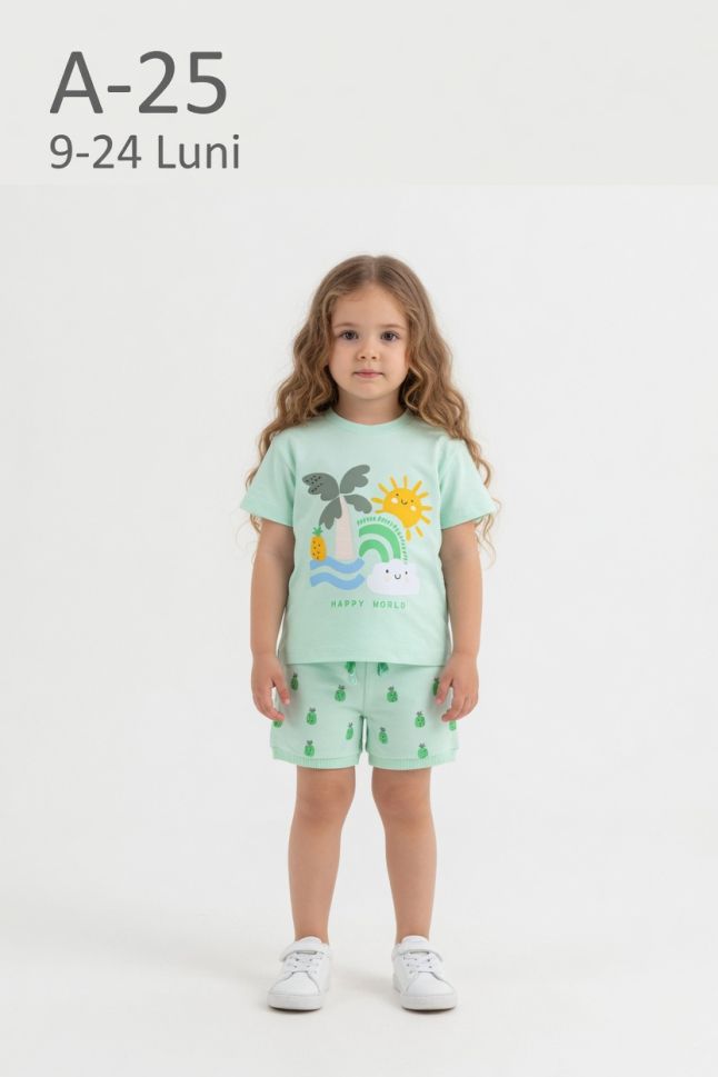 Acest set pentru fetițe din două piese este alegerea perfectă pentru sezonul cald, oferind confort și un design vesel. Setul este compus din tricou și pantaloni scurți, fiind potrivit pentru utilizarea zilnică.