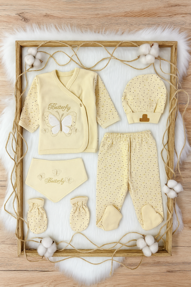 Set Nou-născut Organic Concon 0-3 Luni 5 Piese Brodat Fluture Bej A40