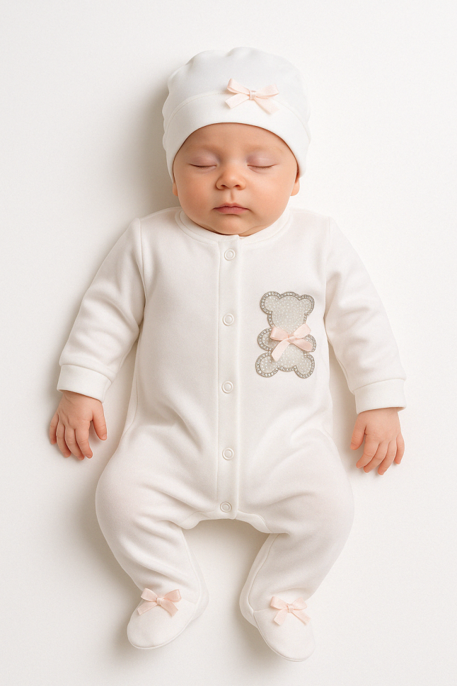 Bun venit în lumea delicată a îngrijirii bebelușilor cu setul nostru adorabil de salopetă și beretă, conceput special pentru pielea sensibilă a micuților!