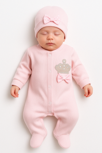Setul include o salopetă confortabilă și o beretă asortată, perfecte pentru a-l menține pe micuț la căldură și stilat. Disponibil în dimensiuni pentru bebeluși de 0-3-6-9 luni, acest set este ideal pentru primele luni de viață ale bebelușului.