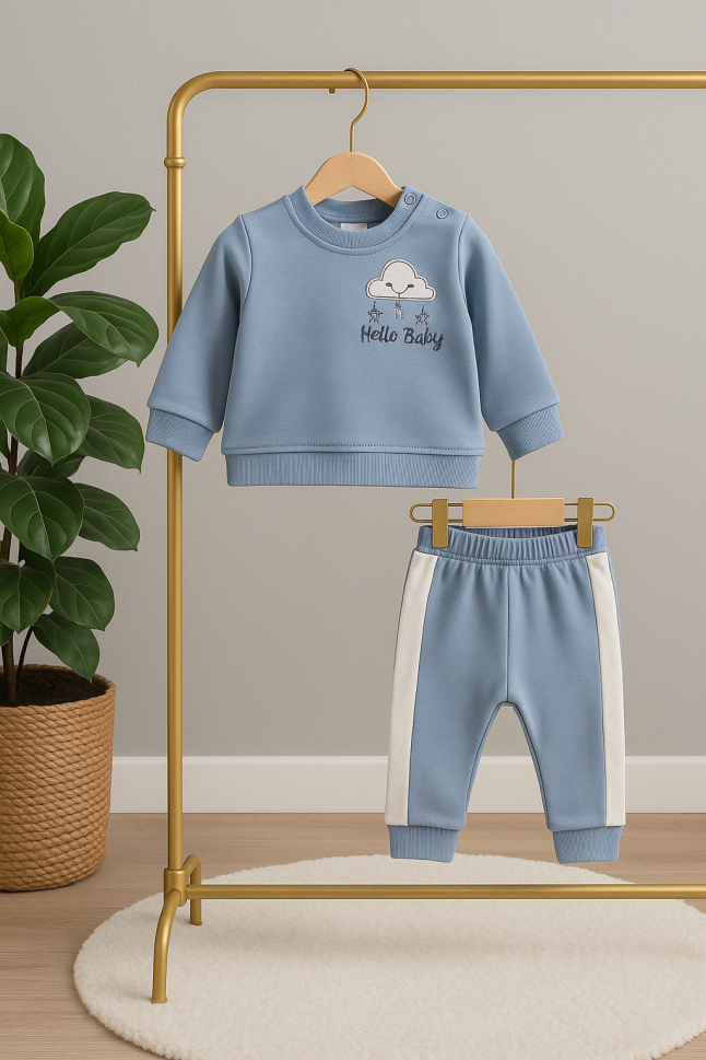 Setul include un hanorac călduros și pantaloni confortabili, perfecti pentru joacă sau pentru un somn liniștit. Designul simplu și elegant îl face ușor de asortat cu alte hăinuțe din garderoba bebelușului tău.