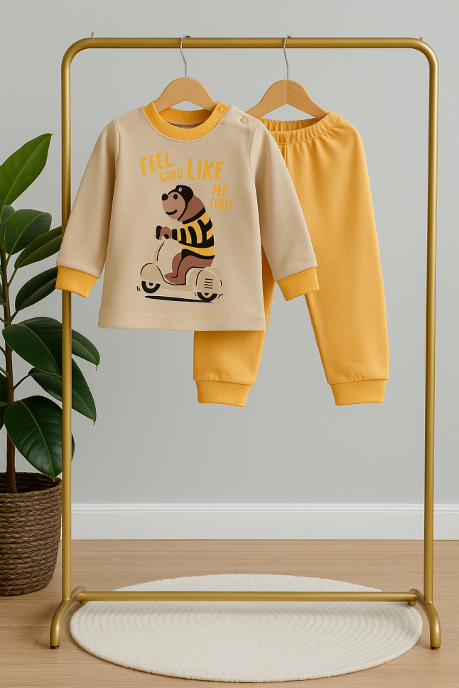 Descoperă confortul și siguranța pentru micuțul tău cu acest set adorabil, perfect pentru joacă și relaxare! Fabricat în Turcia, setul include un hanorac și pantaloni din bumbac 100% pieptănat, asigurând o atingere delicată pe pielea sensibilă a copilului.