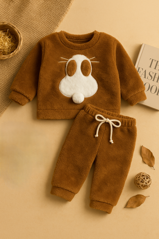 Setul include un hanorac călduros și o pereche de pantaloni confortabili, oferind un aspect coordonat și adorabil. Perfect pentru joacă, plimbări sau pur și simplu pentru relaxare acasă.