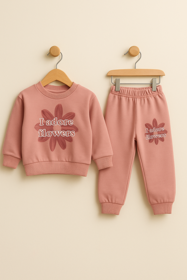 Costum BABYCOY 9-12-18-24 luni cu imprimeu I ADORE FLOWERS A27