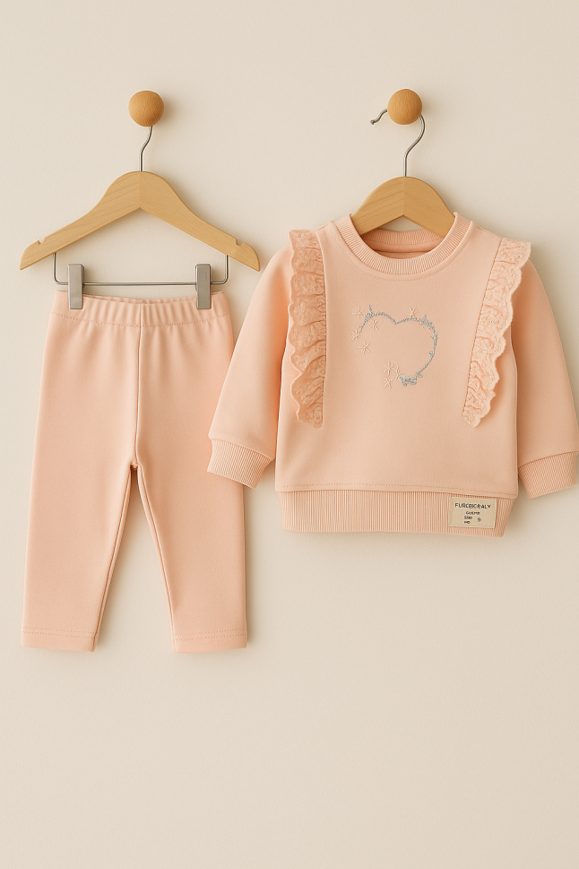 Descoperă confortul și siguranța pentru pielea sensibilă a bebelușului tău cu acest set adorabil, fabricat în Turcia! Setul include un hanorac din bumbac pieptănat cu 2 fire și pantaloni asortați, perfect pentru joacă și relaxare.