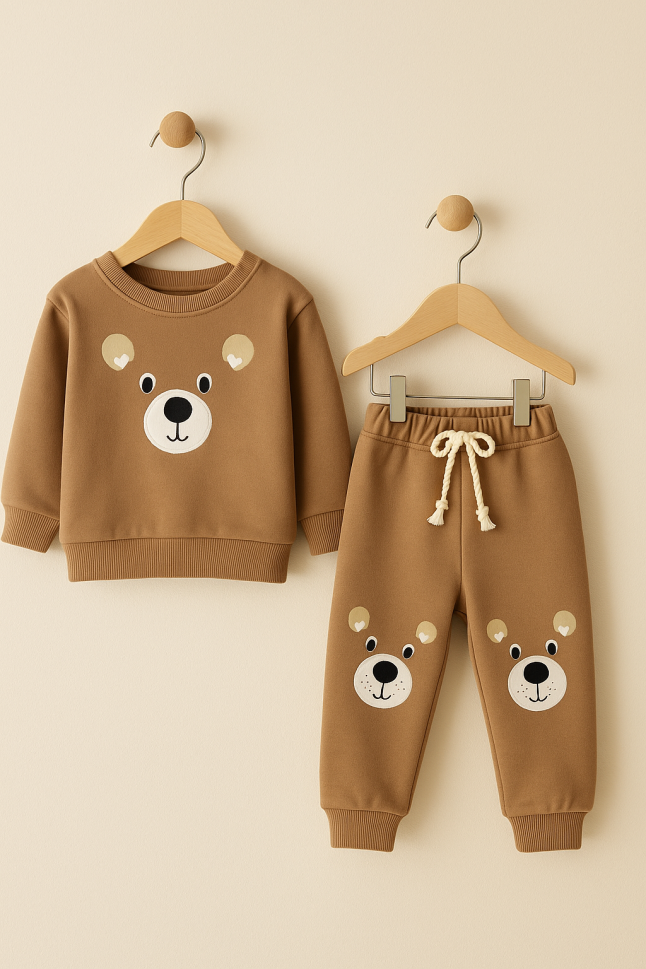 Setul include un hanorac călduros și pantaloni confortabili, ambele realizate din țesătură Combat cu 3 fire, oferind un plus de căldură și durabilitate. Designul este gândit pentru a permite libertate de mișcare, astfel încât bebelușul să se poată juca și explora lumea înconjurătoare fără restricții.