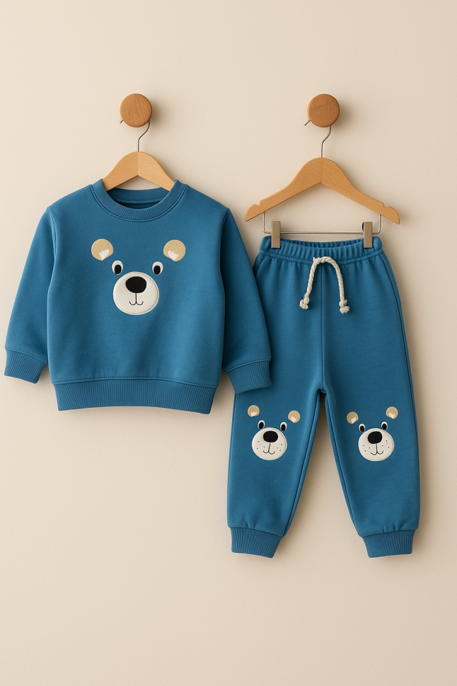 Setul include un hanorac călduros și pantaloni confortabili, ambele realizate din țesătură Combat cu 3 fire, oferind un plus de căldură și durabilitate. Designul este gândit pentru a permite libertate de mișcare, astfel încât bebelușul să se poată juca și explora lumea înconjurătoare fără restricții.