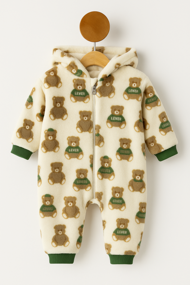 Încălzește-ți bebelușul cu această adorabilă salopetă de iarnă, perfectă pentru zilele reci! Fabricată din pluș/welsoft moale și confortabil, asigură căldură și protecție.