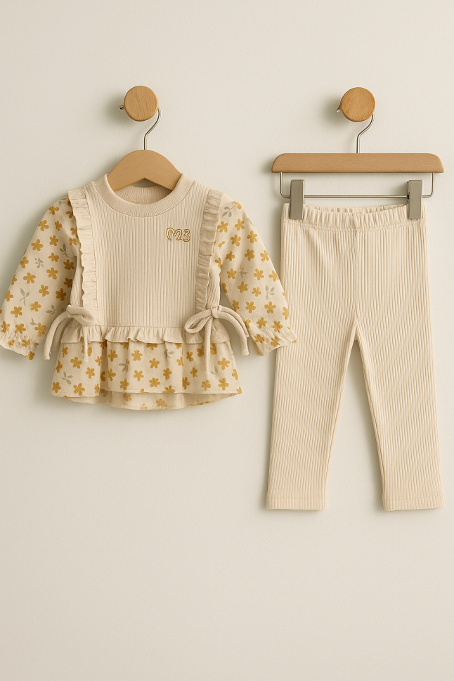 Descoperă setul perfect pentru bebelușa ta, creat cu dragoste și atenție în Turcia! Acest set adorabil, disponibil în mărimile 6, 9, 12, 18 și 24 de luni, este ideal pentru a-i oferi micuței tale confort și stil.