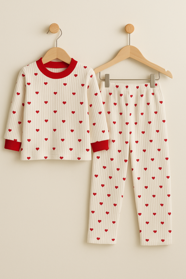 Set de pijamale pentru bebeluși Özlv cu imprimeu de inimă, 1-2-3 ani A11