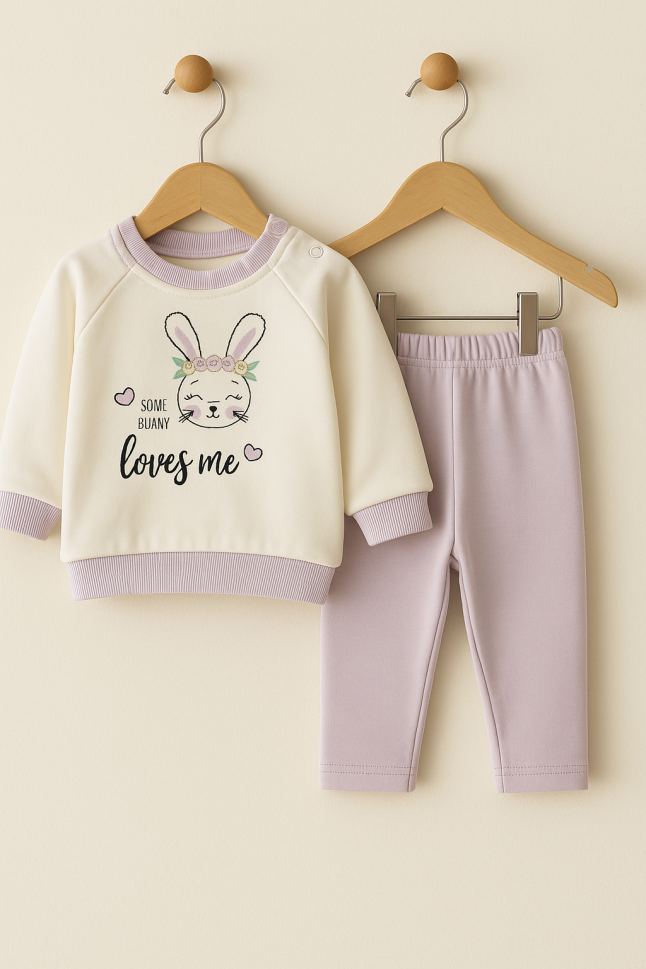 Setul include un hanorac și pantaloni, perfecte pentru joacă sau plimbări. Produsul este disponibil în mărimile 3-6-9-12 luni. Se spală la mașină la 30°C. Fabricat în Turcia.