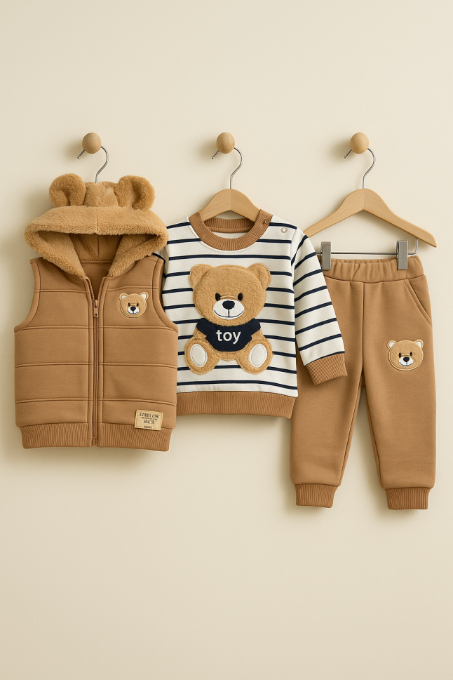 Costum BYMURAT 6-9-12-18-24 luni, 3 piese, cu vestă A57