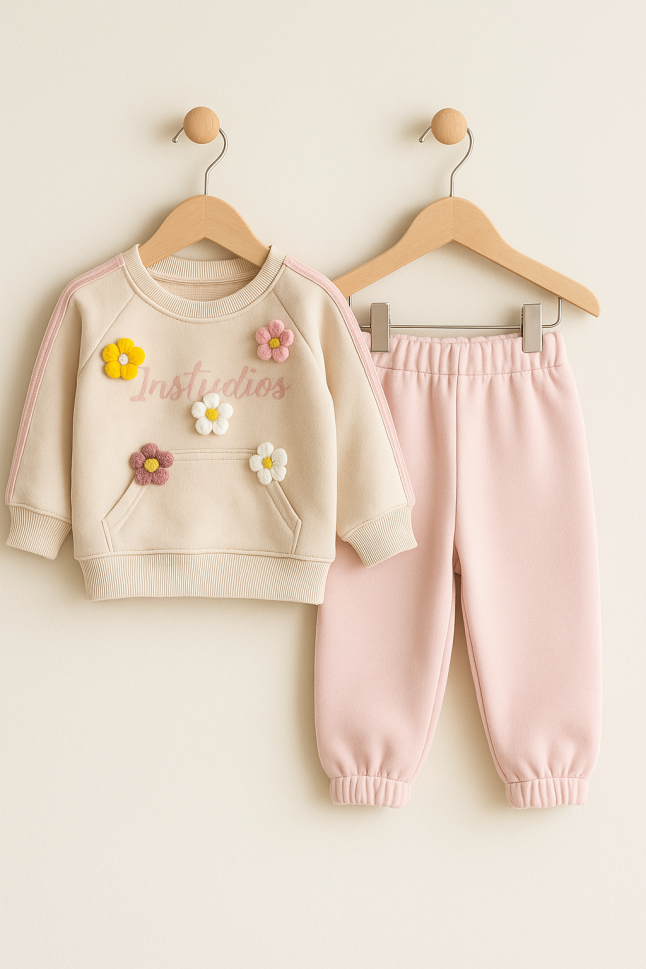 Setul include un hanorac călduros și pantaloni asortați, ideal pentru joacă sau plimbări.