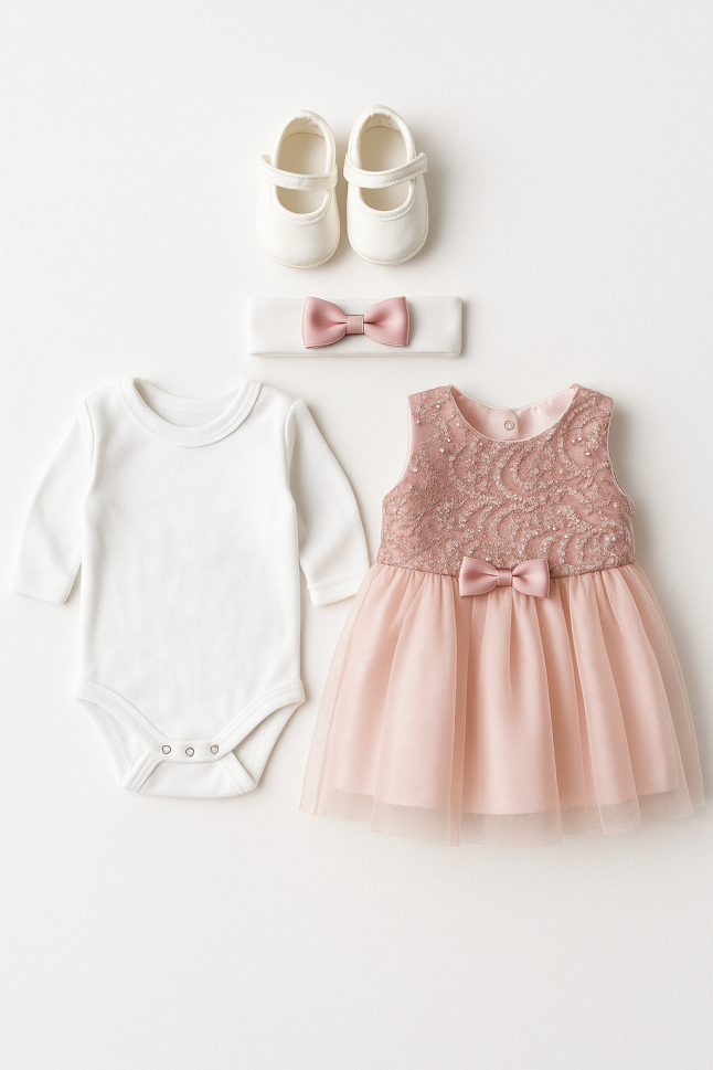 - Rochiță delicată: O rochiță adorabilă, perfectă pentru ocazii speciale sau pentru o zi relaxantă acasă. Designul său încântător va face din bebelușa ta vedeta zilei!