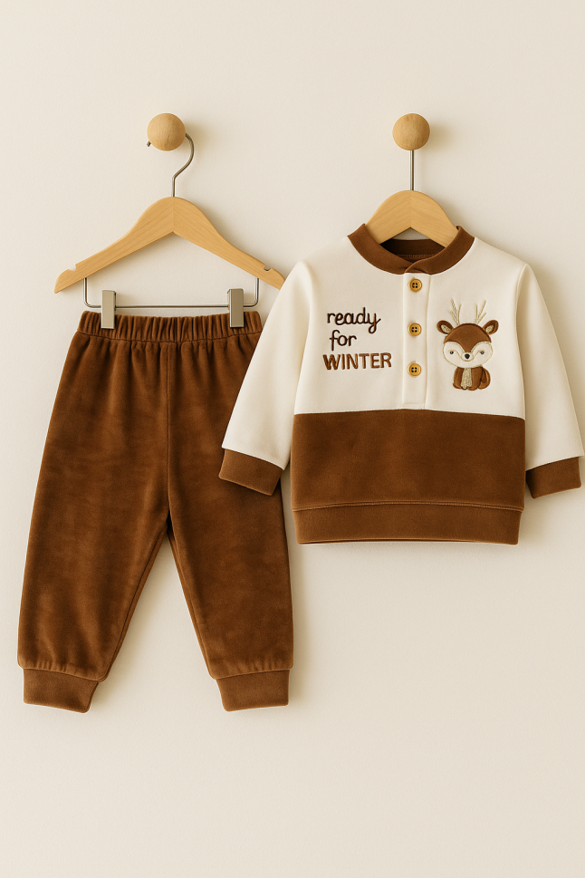 Descoperă confortul suprem pentru bebelușul tău cu acest set adorabil din catifea moale! Ideal pentru bebeluși de 3-6-9 luni, setul include un top și pantaloni, perfecte pentru joacă și somn. Fabricat în Turcia, setul este creat cu grijă, asigurând că nu conține substanțe cancerigene sau alergene, protejând pielea sensibilă a bebelușului.