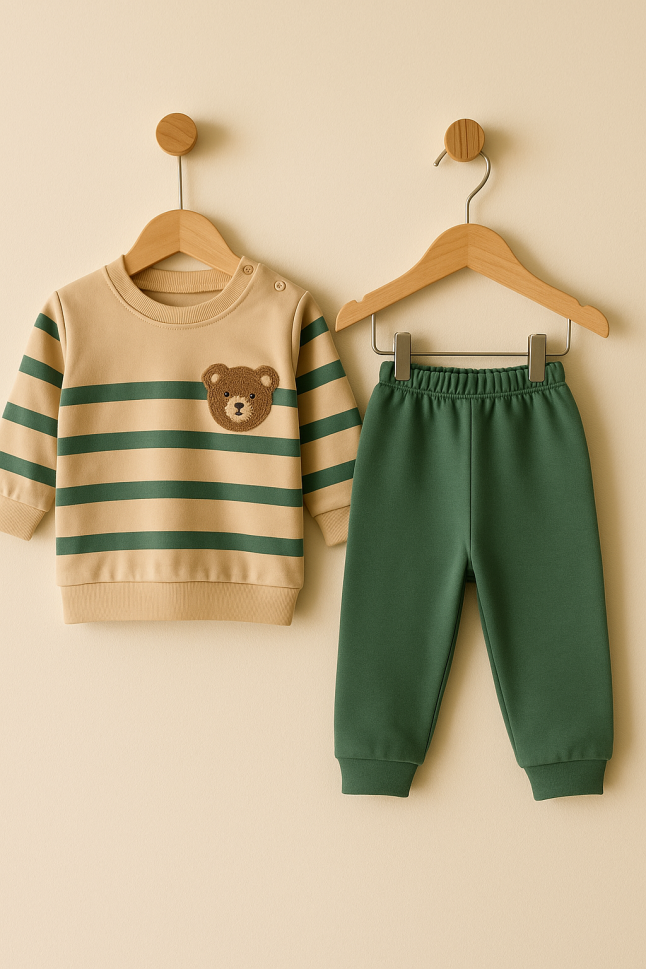 Descoperă confortul și siguranța pentru pielea sensibilă a bebelușului tău cu acest set adorabil, fabricat în Turcia! Setul include un hanorac călduros și pantaloni lejeri, perfecti pentru joacă și relaxare.
