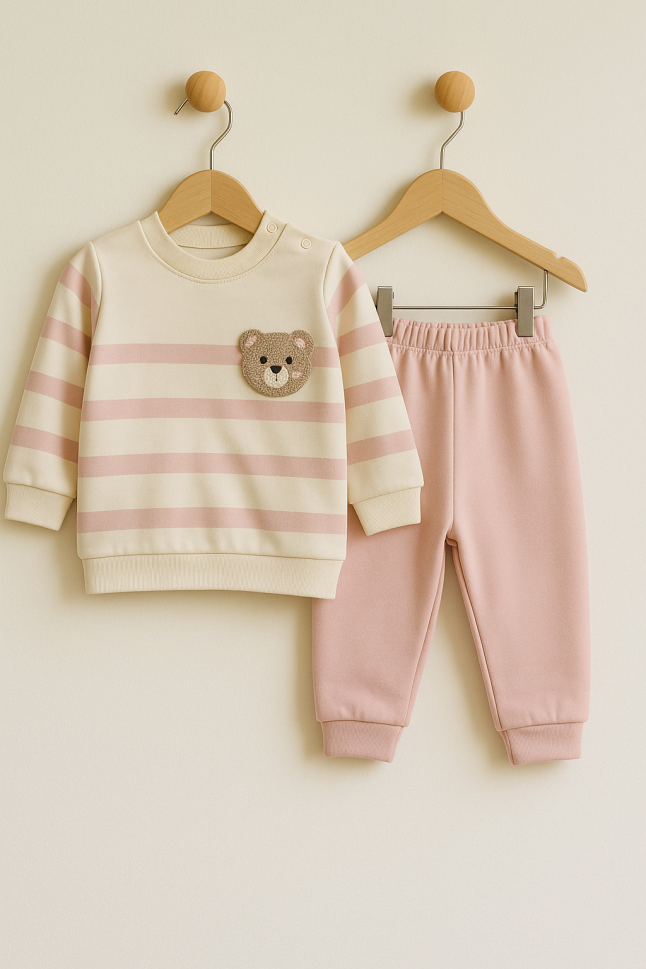 Descoperă confortul și siguranța pentru pielea sensibilă a bebelușului tău cu acest set adorabil, fabricat în Turcia! Setul include un hanorac călduros și pantaloni lejeri, perfecti pentru joacă și relaxare.