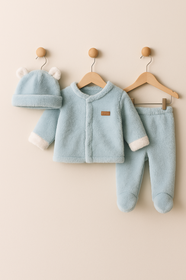 Îmbracă-ți bebelușul cu dragoste și căldură, folosind setul nostru adorabil, perfect pentru primele luni de viață! Fabricat cu grijă în Turcia, acest set combină confortul suprem cu siguranța și stilul.