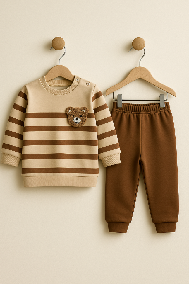 Descoperă confortul și siguranța pentru pielea sensibilă a bebelușului tău cu acest set adorabil, fabricat în Turcia! Setul include un hanorac călduros și pantaloni lejeri, perfecti pentru joacă și relaxare.