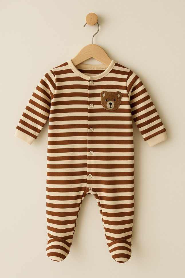 Salopetă confortabilă pentru bebeluși, perfectă pentru pielea delicată a nou-născuților. Fabricată din bumbac 100%, asigurând o senzație moale și plăcută la atingere.