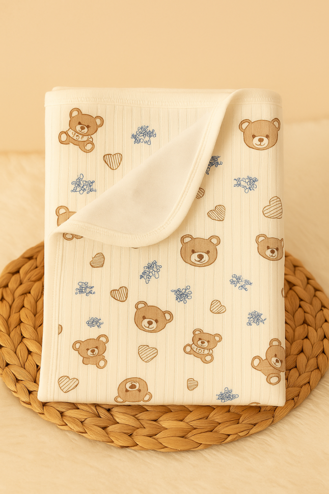 Pătură din bumbac pieptănat cu un singur strat, 85x75 cm, cu model de ursuleț de pluș A10