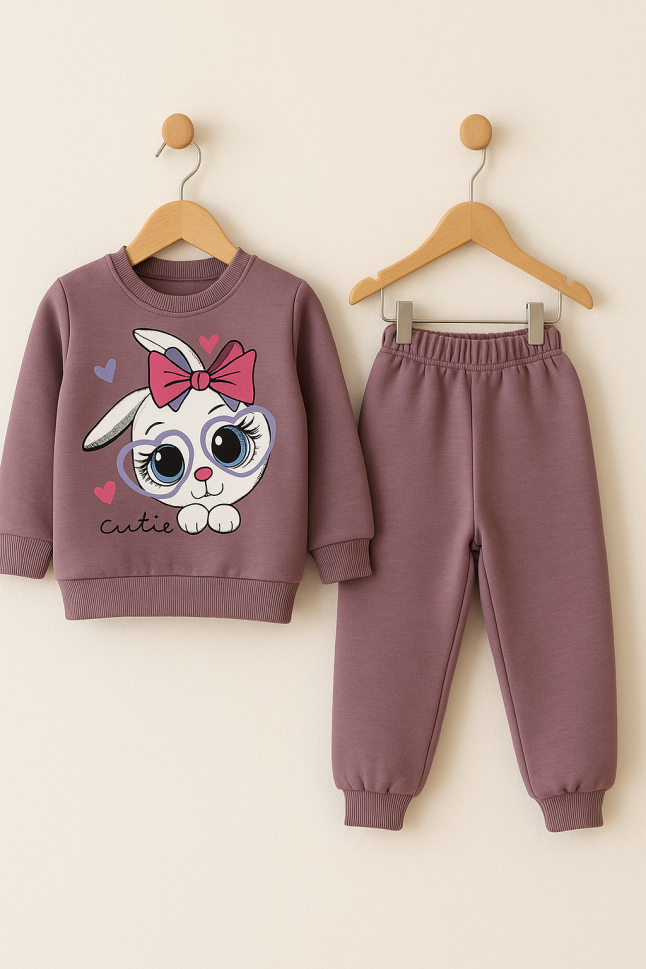 - Set 2 piese: Include un hanorac călduros și pantaloni confortabili, perfect coordonați pentru un look adorabil și practic.