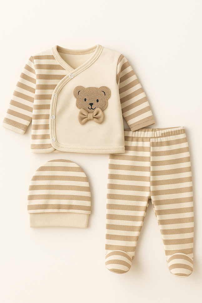 Îmbracă-ți bebelușul în confort și siguranță cu acest set adorabil de 5 piese, perfect pentru primele luni de viață! Fabricat cu dragoste și grijă în Turcia, acest set este alegerea ideală pentru pielea sensibilă a nou-născutului.