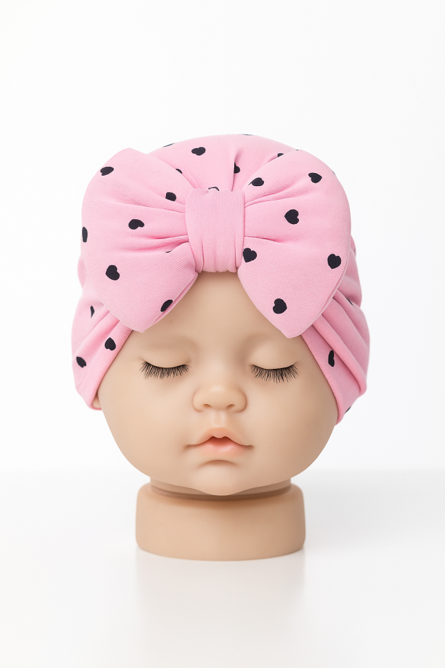 Bonetă pentru bebeluși, fetiță, 0-6 luni, bumbac pieptănat, model cu inimă A8