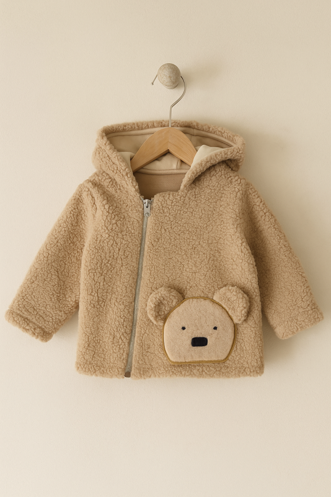 Îmbracă-ți micuțul cu această jachetă călduroasă, perfectă pentru zilele reci! Fabricată din pluș moale de iarnă, asigură confort termic și protecție.