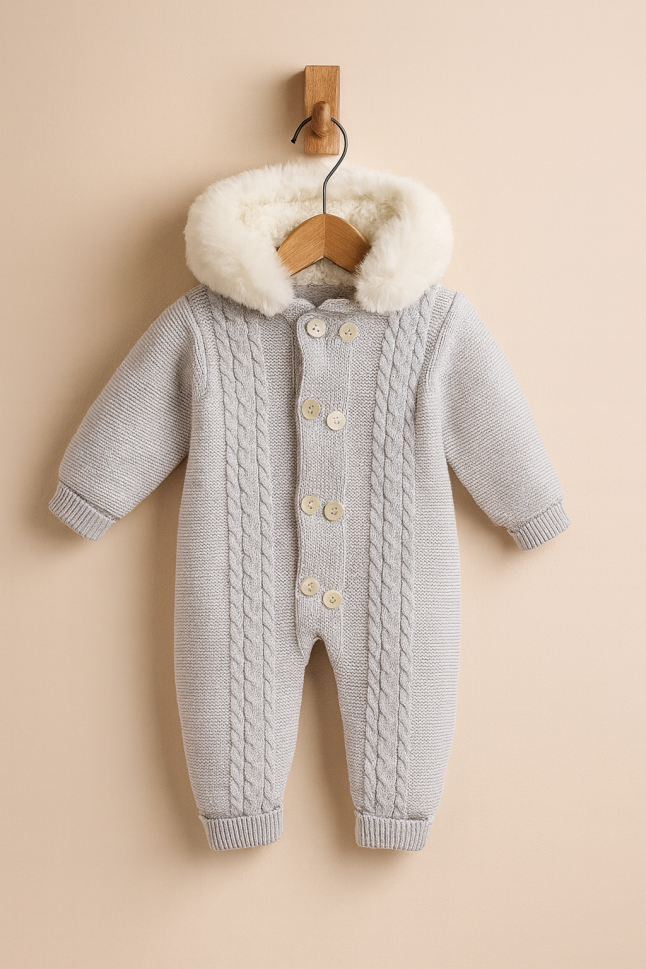 Oferă-i bebelușului tău confortul și căldura de care are nevoie cu această minunată salopetă tricotată!