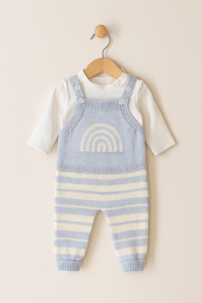 Descoperă setul perfect pentru bebeluși, ideal pentru pielea sensibilă! Fabricat în Turcia din țesătură tricotată moale, acest set adorabil include un body combinat cu salopetă.