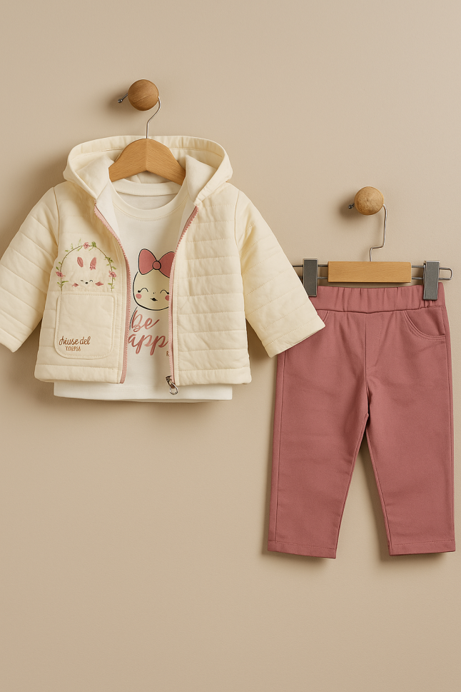 Descoperă setul perfect pentru micuțul tău – un ansamblu adorabil, confortabil și sigur, fabricat cu dragoste în Turcia! Ideal pentru bebelușii cu vârste cuprinse între 9 și 24 de luni, acest set este alegerea ideală pentru zilele pline de joacă și aventură.