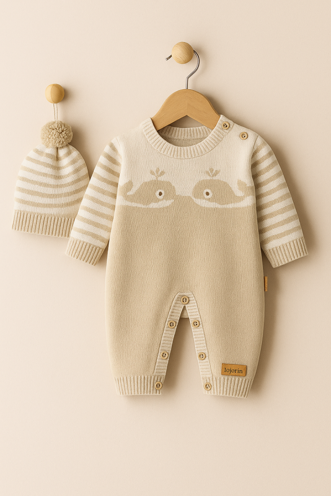 Salopetă tricotată ULUDAĞ cu pălărie tip balenă pentru copii 6-9-12 luni A29