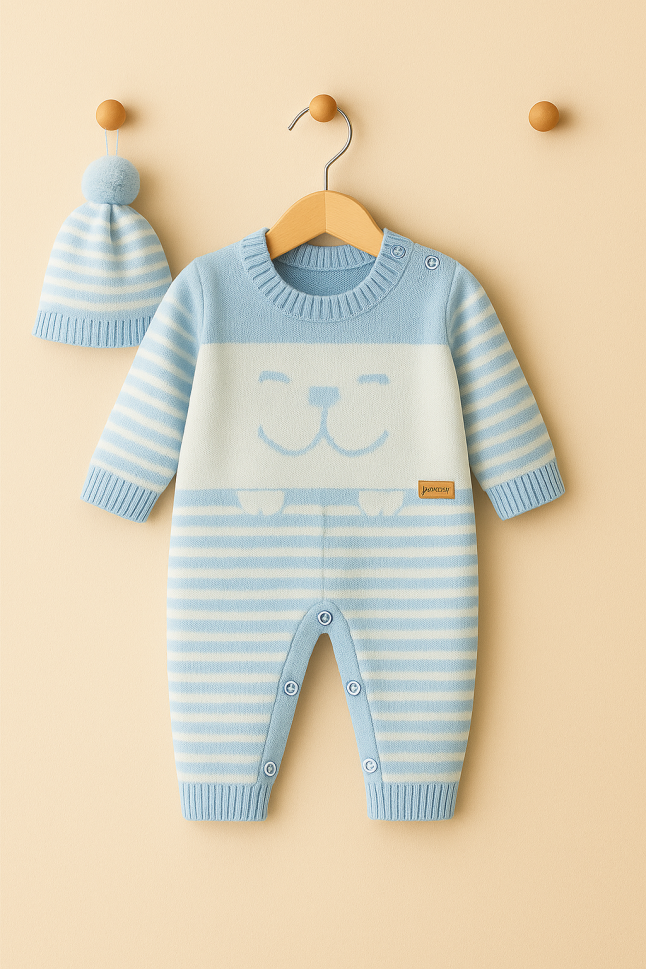 Îmbracă-ți micuțul cu dragoste și grijă cu acest set adorabil de salopetă și căciuliță tricotată, perfect pentru bebelușii cu vârsta cuprinsă între 6 și 12 luni! Fabricat cu atenție în Turcia, acest set combină confortul suprem cu siguranța și stilul.