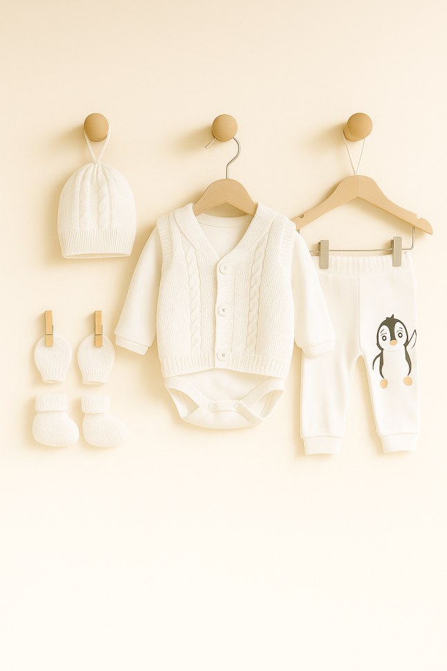 - Set Complet: Tot ce ai nevoie pentru a-ți îmbrăca bebelușul cu stil și căldură.