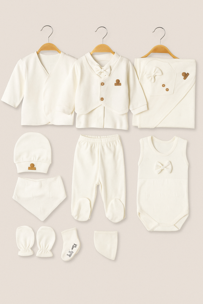Acest set complet conține tot ce ai nevoie pentru a-ți îmbrăca bebelușul cu stil și confort: