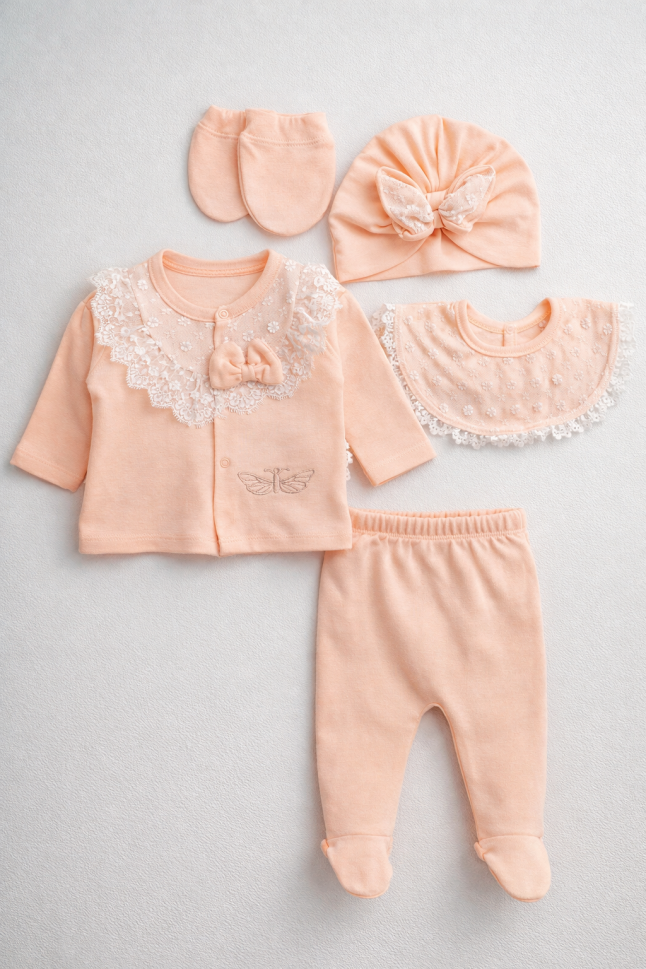 Îmbracă-ți micuțul cu delicatețe și confort folosind setul nostru adorabil pentru bebeluși, perfect pentru nou-născuți cu vârsta cuprinsă între 0 și 3 luni!