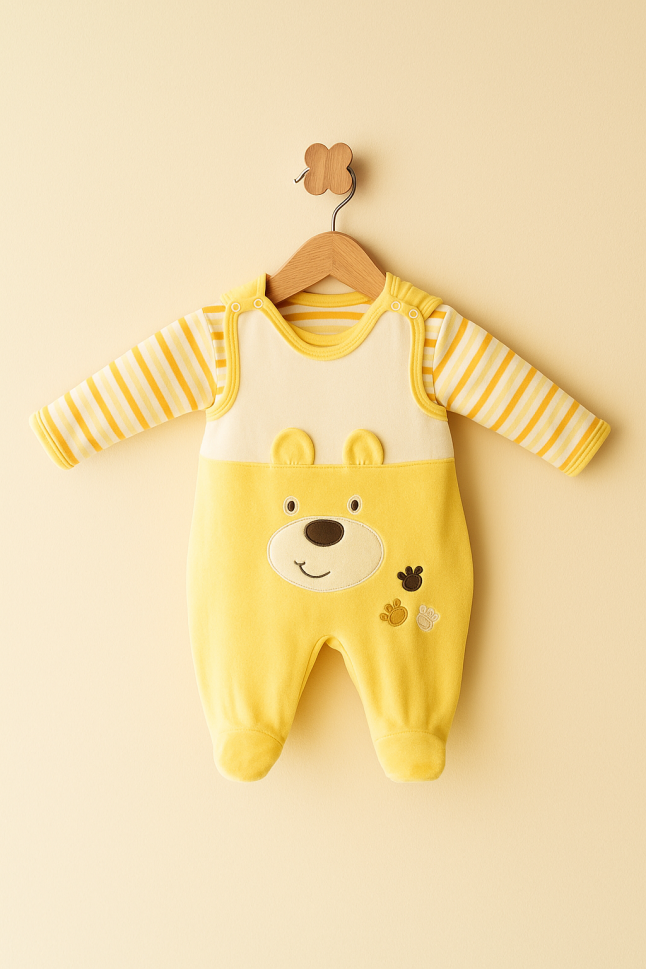 Descoperă confortul suprem pentru bebelușul tău cu acest adorabil salopetă din catifea! Perfectă pentru bebelușii de 6-9-12 luni, salopeta este fabricată din 80% bumbac și 20% poliester, oferind o atingere moale și delicată asupra pielii sensibile.
