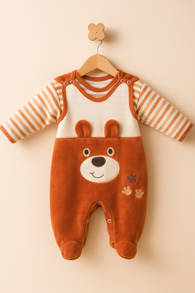 Descoperă confortul suprem pentru bebelușul tău cu acest adorabil salopetă din catifea! Perfectă pentru bebelușii de 6-9-12 luni, salopeta este fabricată din 80% bumbac și 20% poliester, oferind o atingere moale și delicată asupra pielii sensibile.