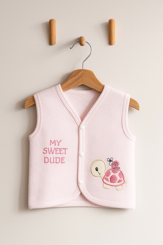 Descoperă confortul și siguranța pentru bebelușul tău cu această adorabilă vestă fabricată din 100% bumbac!
