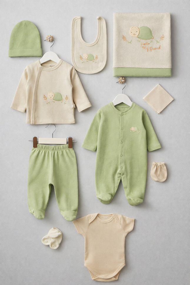 Descoperă delicatețea și siguranța pentru nou-născutul tău cu setul nostru complet, fabricat cu dragoste în Turcia! Acest set esențial pentru bebeluși, ideal pentru primele 0-3 luni, este creat din bumbac 100%, asigurând o atingere moale și blândă pe pielea sensibilă a bebelușului.
