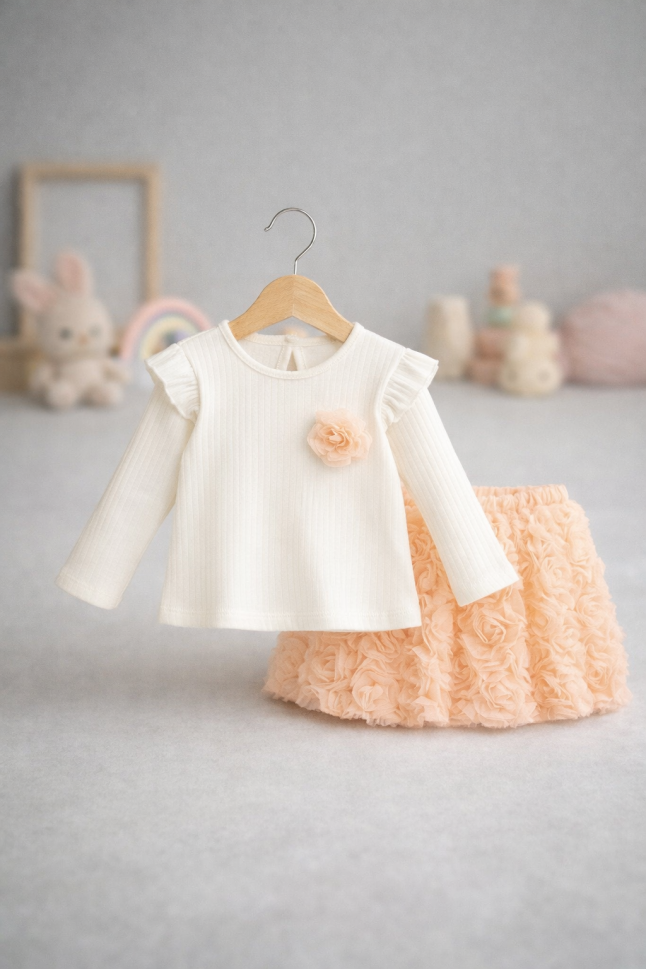 Descoperă setul perfect pentru micuța ta prințesă! Acest set adorabil, fabricat cu grijă în Turcia, este ideal pentru fetițele cu vârste cuprinse între 9 și 36 de luni. Setul include un hanorac confortabil și o fustă din tul, creând o combinație încântătoare și modernă, perfectă pentru joacă sau ocazii speciale.