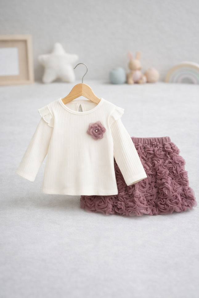 Descoperă setul perfect pentru micuța ta prințesă! Acest set adorabil, fabricat cu grijă în Turcia, este ideal pentru fetițele cu vârste cuprinse între 9 și 36 de luni. Setul include un hanorac confortabil și o fustă din tul, creând o combinație încântătoare și modernă, perfectă pentru joacă sau ocazii speciale.