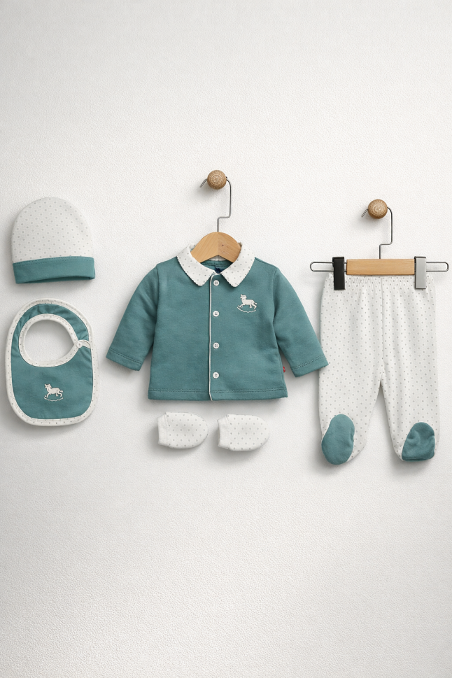 Prima pagină SETURI SPITALARE BEBE Seturi De Nou-Născut Bebelusi Din 3-5 Piese SET DE 5 BĂRBĂȚI BYMURAT 0/3 LUNI CU CAI BRODATE A29