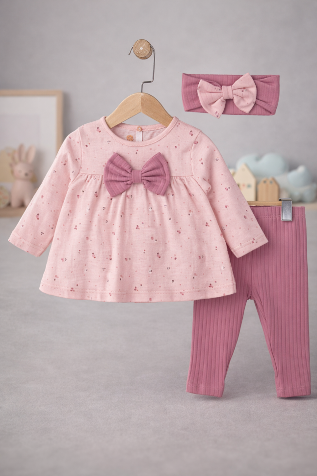 - Setul include: Hanorac, pantaloni și bandană, perfecte pentru un look complet și adorabil.